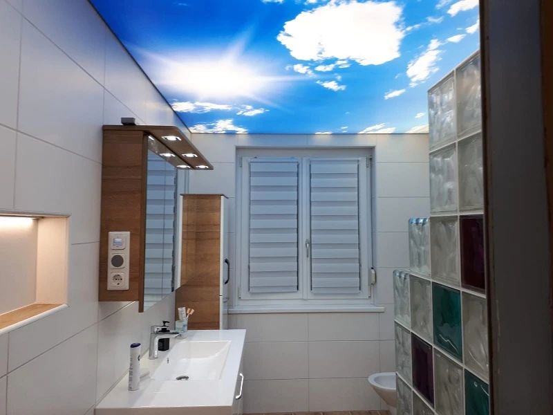 Entdecken Sie, wie eine Spanndecke & Lichtdecke auch in Feuchträumen wie Bad, sowie Wohnzimmer und Küche für ein atemberaubendes Ambiente erzielen.